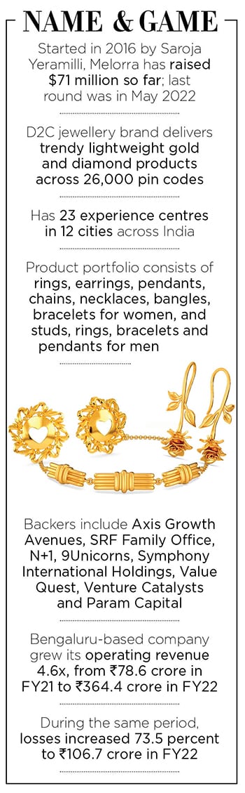 What intrigued the funder was two things. First, jewellery was a massive market and there were no new-age companies looking to disrupt it. Second was the stellar background of the founder. “She had a terrific understanding of the market," Talwar underlines. But what was most impressive was the way and Yeramilli explained the nuances of the segment in a simple manner. Yeramilli, he reckons, has immense clarity of vision and execution, and hasn’t missed a topline or bottomline number in her P&L (profit and loss) since April 2018. Though the startup posted a loss of ₹106.7 crore in FY22, Talwar reckons that Melorra is on track to scale sustainably.