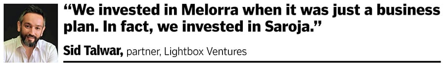 Back in January 2016, just one week after launching the operations, Yeramilli dazzled all with her fiery intent. Melorra secured $5 million from Lightbox, making it the first startup in India to bag the largest seed round. “There was just a laptop, a PowerPoint presentation and Saroja. That’s it," recalls Sid Talwar, partner at Lightbox Ventures. “There was no company. No product. Nothing. We just bet on her," he says. It took Talwar a little over five months and countless rounds of meetings with Yeramilli to understand the sector.