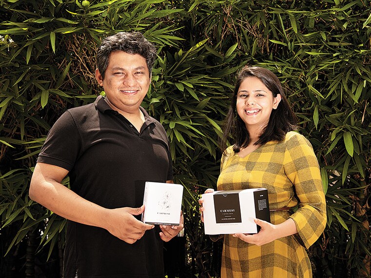 Tanvi Johri, 26, and Rikshav Borah, 29, are co-founders of New Delhi-based Carmesi (Spanish for crimson), which makes premium sanitary pads from biodegradable bamboo fibre—an ultra-absorbent with anti-bacterial properties—and corn starch.