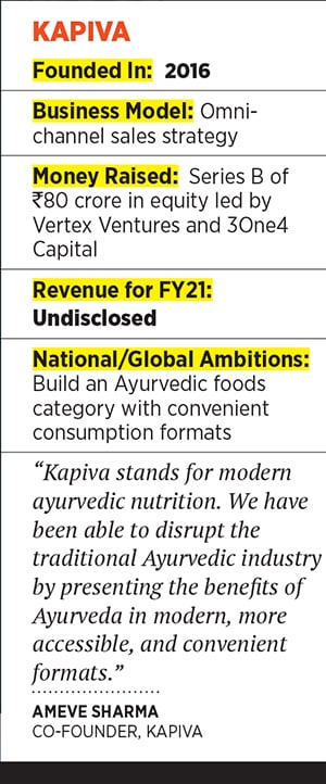 Not relying on a digital sales strategy alone, but also leveraging its strong, old-school distribution network of 6,000 outlets in 12 cities, is Kapiva, founded by Ameve Sharma, the third-generation entrepreneur of the 103-year-old Ayurvedic company Baidyanath, along with co-founder Shrey Badhani. The company had seen monthly revenue grow 3x between March 2019 and March 2020, and achieved a revenue run rate of ₹80 crore per annum by April 2021. “Although we see a stronger demand from metros, we are seeing the demand rise from tier 2 and 3 cities as well. The pandemic has helped us get access to new customers," says Sharma. “The company is expected to cross ₹300 crore in revenue in the next five years. Kapiva is also aiming for profitability within the next two years."
