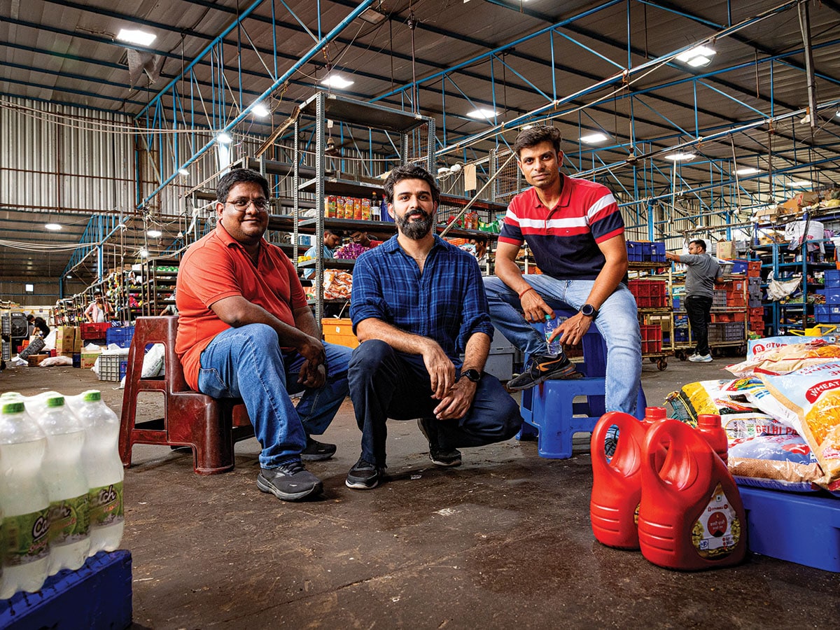 CityMall co-founders (from left): Naisheel Verdhan, Angad Vinod Kikla and Rahul Gill at their warehouse in Khandsa village, Gurugram, HaryanaImage: Madhu Kapparath