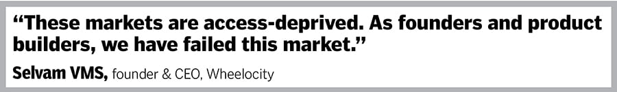 “The issue is that these markets are extremely access-deprived. We [those living in urban areas] are extremely spoilt. We get annoyed when we don’t get our deliveries in seven minutes. But these markets have to wait for seven days to go to a local haat and buy things," says Selvam VMS, co-founder and CEO of Wheelocity.