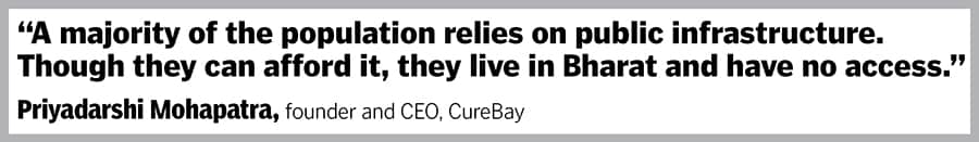 So far the majority of health care investments has gone into the top cities. “A majority of the population continues to rely on public infrastructure. Though they can afford it, they live in the emerging India, or Bharat, and have no access," explains Priyadarshi Mohapatra, founder and CEO, CureBay. As you move down the tiers, especially to Primary Health Centres (PHCs), the absence of doctors becomes stark. Nearly 70 percent of PHCs lack medical personnel, not due to lack of intent but due to a massive shortage.