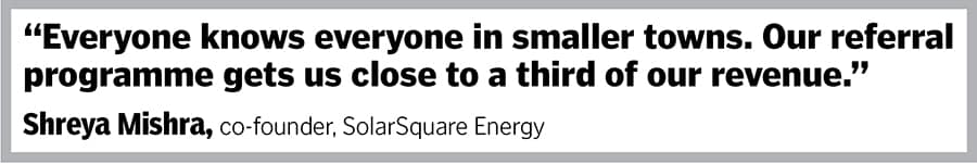 Outside the big cities, community connections and word-of-mouth matter more. “Everyone knows everyone in smaller towns. Our referral programme gets us close to a third of our revenue. Interestingly, referrals barely work in the metros," says Mishra.