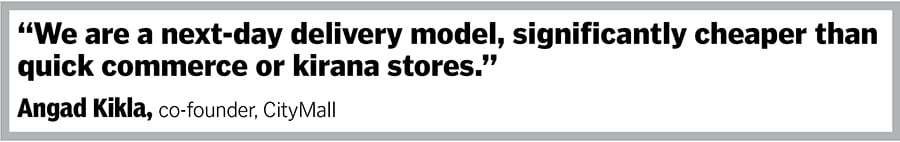 The company pays these microentrepreneurs (delivery partners) a commission for every delivery. “We deliver products to them in bulk. They do the bulk breaking, packing and delivering," says Kikla. These are micro-dark stores, but CityMall does not invest in the real estate or manpower. “We are a next-day delivery model, significantly cheaper than quick commerce or kirana stores," adds Kikla. Having a 100-percent online and comparatively asset-light model, he says, “We are making money on every order, unlike most others in this category." It does not charge any platform or convenience fee.