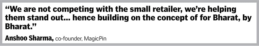 From small food joints to fashion outlets, MagicPin connects local merchants to digital consumers, enabling discovery, transactions, and even delivery—all within a few kilometers. “We are not competing with the small retailer, we’re helping them stand out," Sharma adds, “hence building on the concept of for Bharat, by Bharat."