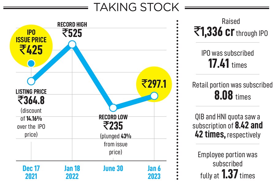 There was a bewitching twist, though. Five months later, the stock slumped to a record low of ₹235 on June 30. It was a staggering fall of 43 percent from the issue price. The public markets globally were in the midst of a price correction, tech stocks were getting battered, and India was no exception.
