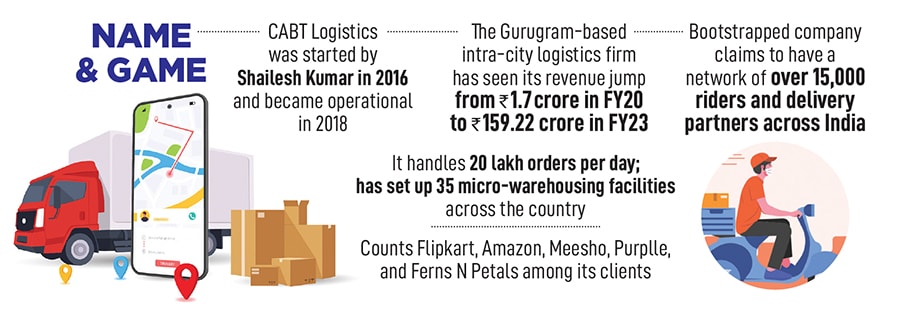 Cut to November 2023. The delivery boy from Flipkart has built a bootstrapped delivery business, which clocked close to ₹160 crore in FY23. When put in context, the CABT story looks like a fairy tale: From a paltry ₹1.7 crore in FY20 to a staggering ₹159.22 crore in FY23 from 40 employees in 2019 to over 2,000 now and from delivering across a handful of cities to covering 23 states and over 12,000 pin codes in 2023.