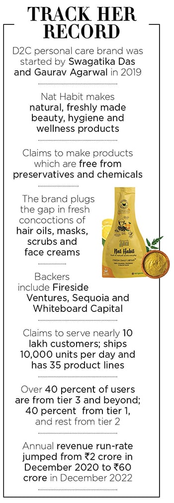Dipanjan Basu, partner at Fireside Ventures, explains why they backed Das. Founders are either strong in product, brand or channels. “Swagatika is one of the rare founders who brings in a balance of all three," he reckons. Her product innovation mindset, deep understanding of the formulation, new product launches and passion for building a brand make her unique, he adds. Nat Habit, Basu stresses, is a massive disruption in the beauty and personal care space. While there are brands offering natural products, Nat Habit’s unique proposition, in-house scalable manufacturing, supply chain and strong unit economics put it in a different trajectory.