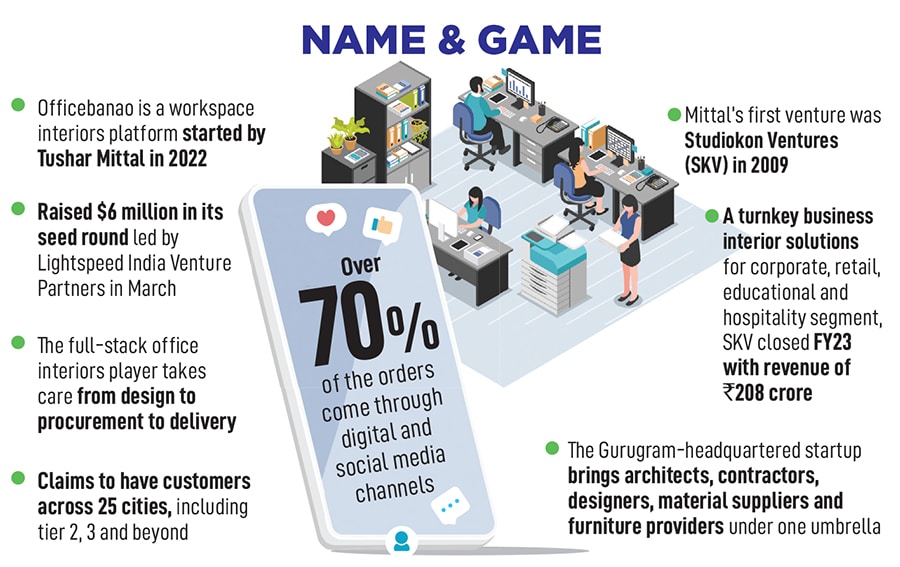 Officebanao has a unique playbook. The Gurugram-headquartered startup brings architects, contractors, designers, material suppliers and furniture providers under one umbrella. In March, it raised a funding of $6 million in seed round which was led by Lightspeed India Venture Partners, and over the next few months it expanded its play across 25 cities, including tier 2, 3 and beyond. “SKV reinforced my self-belief that a village boy can do anything," says Mittal. “Officebanao will use the tech template to build a brand and take it across the country."