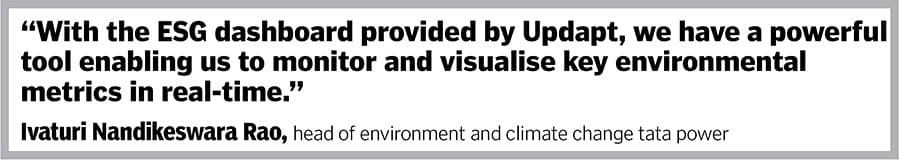 “With the ESG dashboard provided by Updapt, we have a powerful tool at our fingertips, enabling us to monitor and visualise key environmental metrics in real-time," says Ivaturi Nandikeswara Rao, head of environment and climate change at Tata Power, in a testimonial on Updapt’s website. “From tracking our carbon footprint to managing energy consumption and automating GHG accounting, this dashboard provides invaluable insights that drive our sustainability efforts forward," Rao adds.