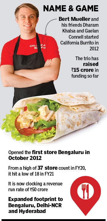 Back in March 2020, and over the next few months, Mueller did display loads of nimbleness. Covid threatened to play spoilsport. California Burrito was logging over 20 percent same store sale (SSS) growth for eight quarters pre-Covid. “We were beating all other listed brands in this metric," says Mueller. Post-Covid, the food entrepreneur had to beat his own playbook. “We reworked packaging, had a hard look at the menu, focussed on delivery and tweaked our pricing," he says.