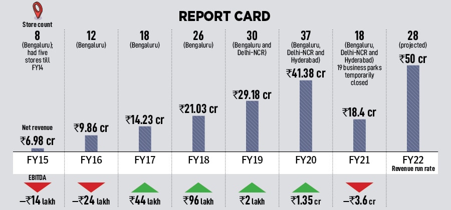 Then came the pandemic, and the American dream got almost snuffed. Over the next year, stores got halved as 19 outlets in business parks shuttered revenue tumbled from Rs41.38 crore in FY20 to Rs18.4 crore in FY21, and the brand posted its biggest loss of Rs3.6 crore. “It was a tough time," Mueller recalls.