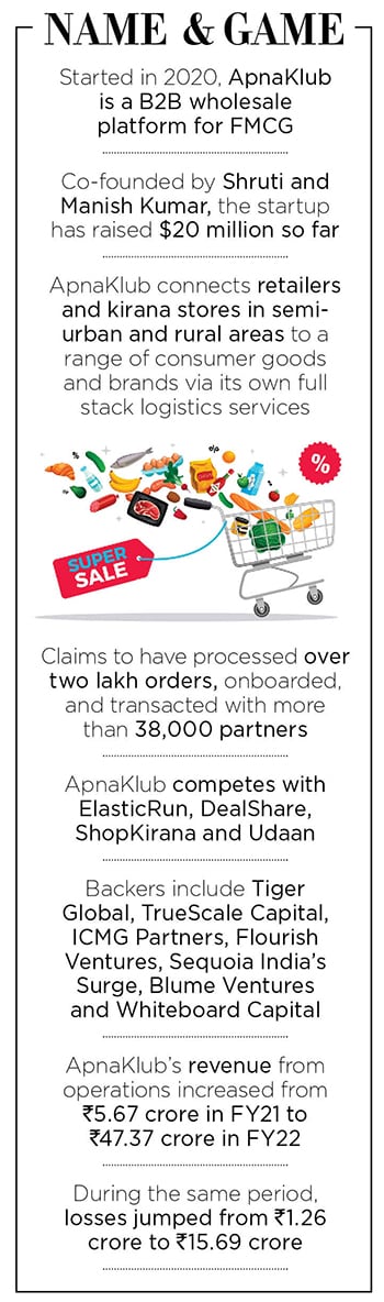 Co-founded by Shruti and Manish Kumar, ApnaKlub is a B2B wholesale platform for FMCG. It connects retailers and kirana stores in semi-urban and rural areas to a range of consumer goods and brands via its own full stack logistics services. ApnaKlub has raised $20 million so far, and counts Tiger Global, TrueScale Capital, ICMG Partners, Flourish Ventures, Sequoia India’s Surge, Blume Ventures and Whiteboard Capital among its backers.