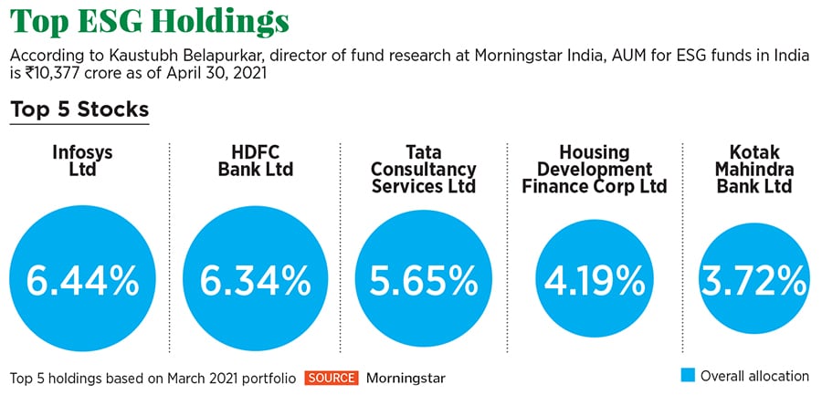 ESG funds in India, according to Belapurkar, manage assets of ₹10,377 crore as on April 30, 2021. Globally, ESG assets are on course to exceed $53 trillion [approximately ₹4,028 lakh crore] by 2025, according to Bloomberg, thereby representing more than a third of $140.5 trillion [approximately ₹10,678 lakh crore] in projected total assets under management.