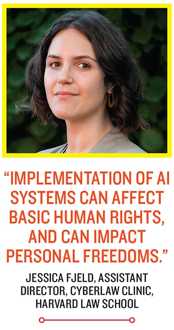 AI describes a whole suite of technologies, and the most significant impact it has is in terms of efficiency, says Jessica Fjeld, assistant director of the Cyberlaw Clinic at the Berkman Klein Center for Internet & Society, at the Harvard Law School in the US. “For instance, in any form of social service, if there are a thousand different people who are processing applications for social benefits, then there will be a thousand different approaches to the same set of rules. If these people are replaced with a single AI system, it will be as if one person can do the work of all the people. Applicants who are waiting for benefits will experience a faster and smoother process, but whatever biases existed among those who were assessing the applications will now be amplified a thousand times."