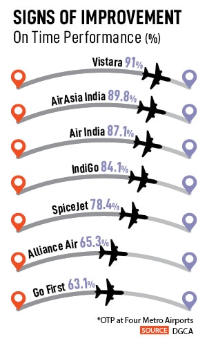 Air India’s on-time performance of 87.1 percent at the four metro airports in September this year was better than market leader IndiGo’s performance of 84.1 percent. “So, there"s been constant improvement and that then leads to some positive reinforcement. People get excited, and they see progress," Wilson says.