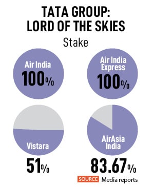 It also helped that Vistara, which Tatas currently run with Singapore Airlines, has managed to make significant inroads into the domestic aviation market with its full-service carrier offering in a market that has been dominated by low-cost carriers. Vistara was set up in 2015, and in the seven years since, the airline has emerged as the country’s second-largest airline by market share. In all, the Tata Group currently controls a 100 percent stake in Air India and Air India Express in addition to a 51 percent stake in Vistara and an 83 percent stake in Air Asia India. That makes it four airline brands under one group.