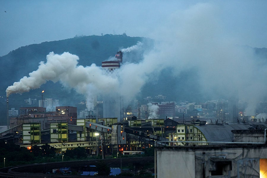 Industries in Mumbai’s Mahul village spewing highly polluted air. Photo by Vijayanand Gupta / Hindustan Times via Getty Images