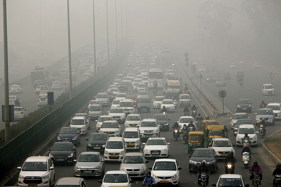Heavy smog, fuelled by stubble burning in Haryana, envelopes the Delhi-Gurugram Expressway. The phenomenon has often rendered the air quality in Delhi-NCR hazardous during the season Photo: Yogendra Kumar / Hindustan Times via Getty Images