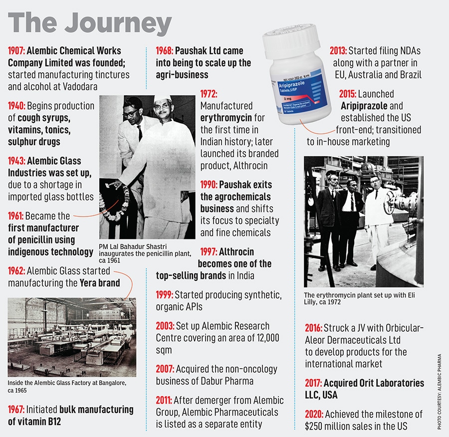 Today, Alembic’s pharma division remains at the core, and the fourth generation—Pranav and Shaunak Amin—drive the business. Despite being late in refreshing their Indian and international product portfolios, the siblings have grown Alembic Pharma into a formidable Rs 5,653 crore business, with a market capitalisation of Rs 15,036 crore.