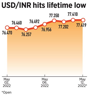 As the greenback strengthens, the rupee hit a record low of 77.63 against the US dollar on May 12, forcing the central bank to step in. The RBI’s calibrated intervention in the currency derivatives markets helped stem a free fall of the rupee. There are multiple factors weighing on the rupee.
