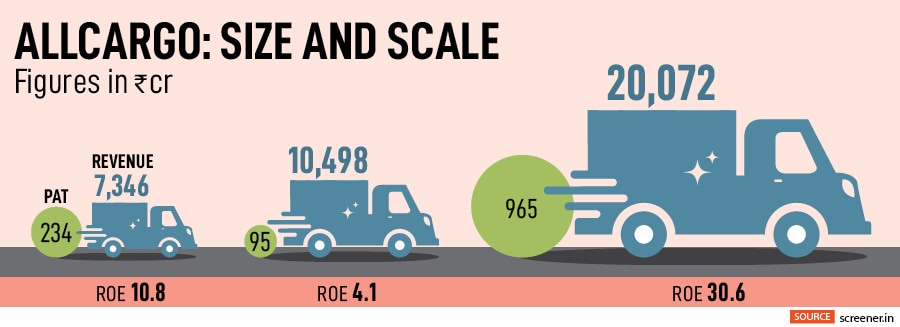 While Allcargo has clearly demonstrated its ability to scale and build a worldwide lead in the LCL business, the market has been less than impressed by the sum of its parts. Over the last five years, even as business has grown—topline has grown fourfold to Rs 20,000 crore and profitability has moved up sixfold to Rs 1,000 crore—the market has not rerated the stock. It continues to languish at 10 times earnings.