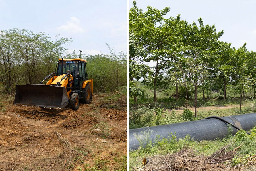 Along the routes excavators clear the overgrowth, you can spot neatly made drainage systems that are now full of sand and muck, highlighting what seemed like a clear intention to build a well-planned city. Image: Vikas Chandra Pureti for Forbes India