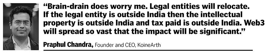 KoineArth’s Founder and CEO Praphul Chandra says: “Brain-drain does worry me. Legal entities will relocate. If the legal entity is outside India, then the intellectual property is outside India and tax paid is outside India. Web3 will spread so vast that the impact will be significant."