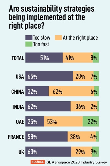Nearly two-thirds of respondents in the US, UK and India, in a GE Aerospace survey, say the pace of implementation of decarbonisation strategies is "too slow"