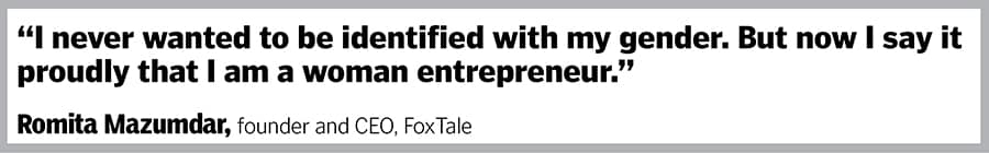 Over a year into entrepreneurship, things have changed. “I never wanted to be identified by my gender," says Mazumdar. “But now I proudly say that I am a woman entrepreneur," she stresses.