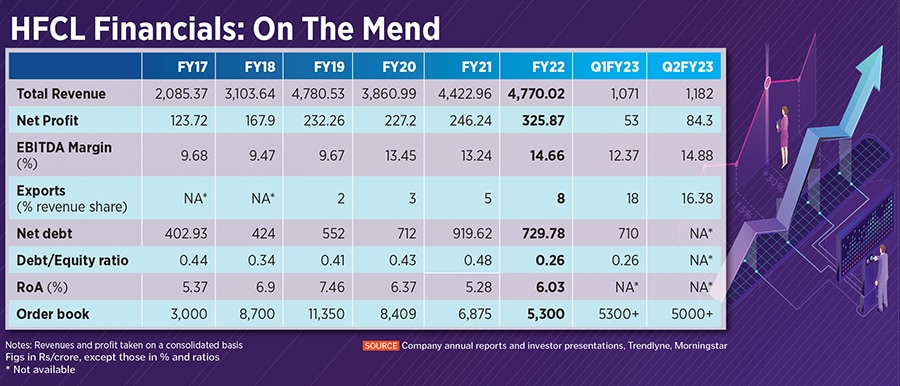 During and after the pandemic, several corporates, including HFCL, saw delays in both execution of projects, which delayed operating cycles and resultant payments. Hence, the company has over the years focussed on increasing the share of revenues from products, rather than projects. Products form 50 percent of revenues in Q1FY23, compared to 43 percent in FY22. “An increase in product revenue will need less working capital and quick realisation of revenue," Nahata says.