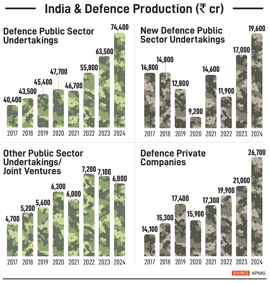 In May 2001, the government opened the defence sector to private companies with up to 100 percent participation. That started a trickle of private sector companies coming in which, over the years, turned into a torrent. The flow increased after 2023, with the government deciding to set up two defence industrial corridors, one each in Uttar Pradesh and Tamil Nadu. The corridors are meant to boost domestic production, streamline regulations, and promote collaborations among private and public sector companies as well as with international entities.