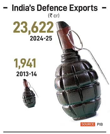All this, and more, manifested itself during Operation Sindoor. During India’s brief war with Pakistan in May, to avenge the Pahalgam terror attack, made-in-India defence equipment was seen to play a visible and decisive role. “The weapons made in India played a major role in reducing terrorist hideouts to rubble," Prime Minister Narendra Modi said on July 26. “Weapons made in India are still keeping the masters of terrorism awake at night."