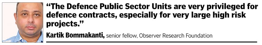 The private sector, while vying for contracts, often finds itself up against PSU behemoths. “The Defence Public Sector Units (DPSUs) are privileged for defence contracts, especially for large high-risk projects," says Kartik Bommakanti, senior fellow at public policy think tank, Observer Research Foundation. “Consequently, contractual arrangements are not stable for the private sector, as opposed to the DPSUs, which have a steady revenue stream."