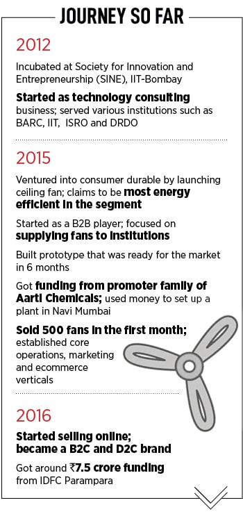 Then came a lifeline in 2016. IDFC Parampara pumped in Rs7.5 crore in the fledgling fan startup which was still into the B2B business of supplying fans to institutions such as colleges and hospitals. The booster helped Atomberg produce 30 fans per day on an average by April 2016. By next April, the numbers shot to 100 fans per day and the startup had morphed into a direct-to-consumer (D2C) brand.