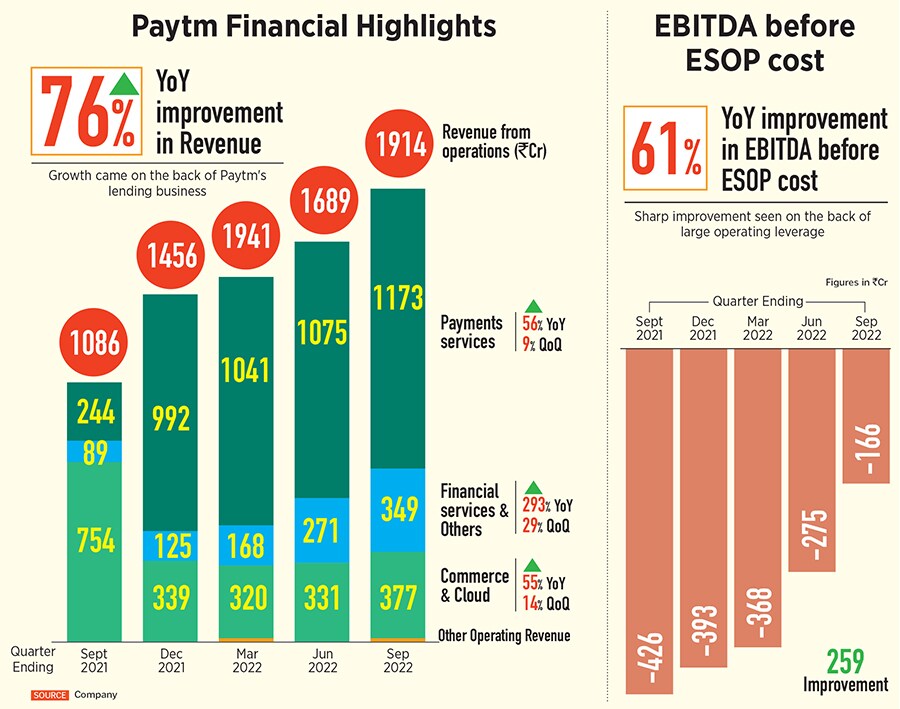 So the bulk of Paytm’s financial services revenue comes from credit, said Sharma during the September quarter earnings call. The company clocked Rs 349 crore in revenue from financial services in Q2FY23.