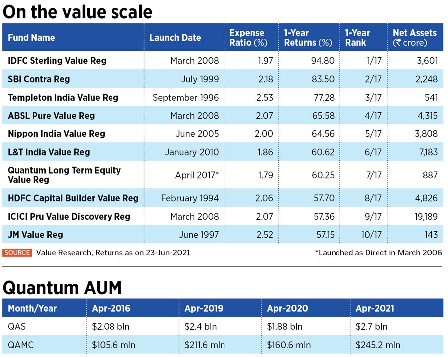 The company manages about Rs 20,000 crore of AUM for international investors under a PMS licence, and even as it continued dealing with international clients, it took their learnings and the process into their asset management company in 2006, launching mutual funds for domestic investors. Its value product, the Quantum Long Term Equity Value Fund, has an AUM of about Rs 887 crore and is ranked among the top 10 in a ranking by independent financial advisory firm Value Research. The Quantum India ESG Equity Fund, launched in 2019, was a natural extension of its integrity screen and parameters.