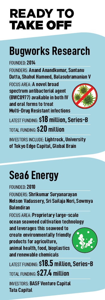 Most of these companies today have reached the stage where they have built solid science programmes and demonstrated that their technologies work. Some are just beginning to bring in some revenues, others are pre-revenue companies—like Bugworks, which is working in the very tough area of anti-microbial resistance—and one or two are making significant revenues, like Sea6 Energy, which has found both Indian and global customers.