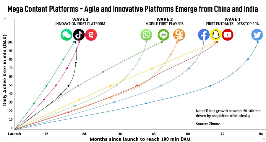 Glance is among the fastest-growing content platforms, and the largest platform of its scale to come out of India, according to Zinnov, a consultancy. It is part of the latest wave of mega content platforms, the third wave, which includes TikTok and WeChat from China, and Glance from India. Glance took less than 21 months to race to 100 million daily active users, Zinnov notes in a whitepaper on India’s digital economy in March.