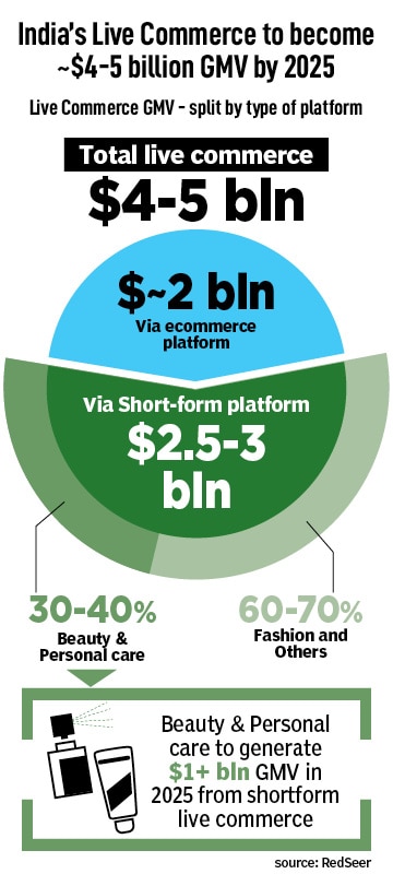 It was time for brands to tap into this, consultancy RedSeer noted in a report in June. The live commerce segment is expected to clock a gross merchandise value of $4-5 billion by 2025, led by strong growth in beauty and personal care and fashion, both in metros and small cities, RedSeer projects.