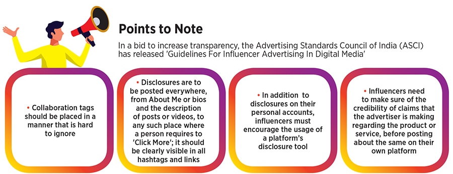 The Advertising Standards Council of India (ASCI) has recently come up with a set of guidelines for influencer advertising on digital media. [see box]. According to the press release, keeping in mind the growing consumption of digital advertising, the disclosure guidelines for influencers were the need of the hour.