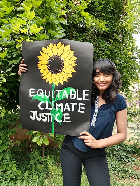 Disha Ravi, a young climate activist is among the 65 percent of the worlds youth who will be most impacted by climate change and want climate-friendly policies far beyond existing ones.