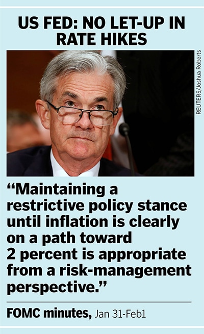 After decades of low interest rates and easy money, the US Fed has hiked interest rates by 450 basis points since March 2022 to bring down inflation to its target of 2 percent. Minutes of the Federal Open Market Committee (FOMC) meeting on January 31-February 1 suggest a wide majority of its members believe that the upside risks to inflation persist.