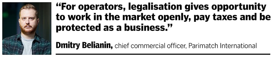 Meanwhile, Rublievskyi pitches for strong regulation and streamlining the industry. Legalising, he reckons, is a win-win for operators, users and all stakeholders. For operators, he explains, getting a legal stamp gives an opportunity to openly work in the market, pay taxes and be protected as a business. “If you"re investing big money, you want to have some kind of protection and stability as a business," he says. There are states in India, he points out, which allow betting and casinos, and regulate them. “The potential of India as a legal operating country is huge," he underlines. “We are all for regulation and responsible betting," he says, adding the users must have the freedom to decide.