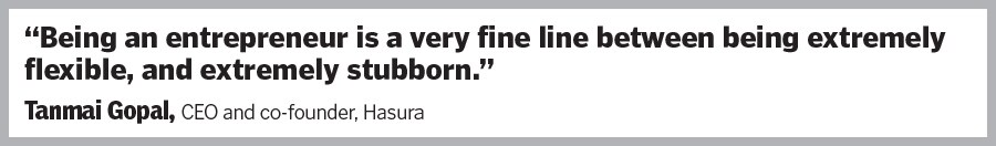 If the game is unique, then so is the name. Gopal says that “it just took 45 seconds" for them to call their startup Hasura. On one of the long car drives in Chennai after shuttering 34 Cross, Gopal and Ghosh, along with two other core team members, were mulling about the new name for the startup. “Why don’t we call it Asura," asked one of the geeks. His justification was simple. Apart from being a cool name, Asura sounded edgy and had a streak of distinctiveness. Another fellow passenger chipped in with his two cents. “Why don’t we call it Hasura," he quipped. His reason too was convincing. Pick up ‘H’ from Haskell, a computer programming language, and make it Hasura. “It just took 45 seconds for all of us to agree," says Gopal.