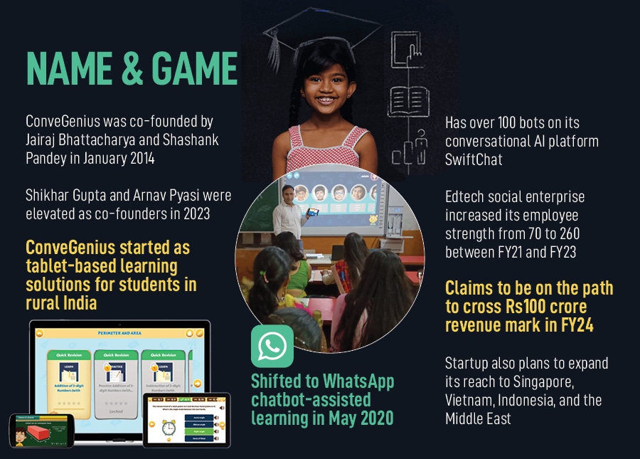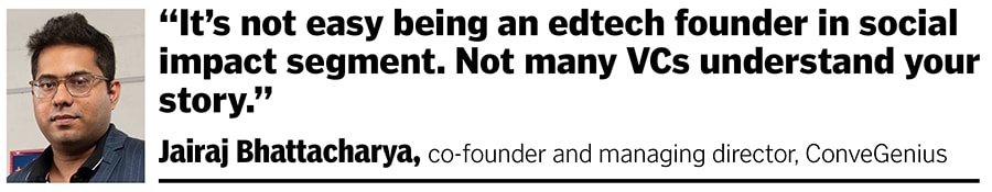 Back in 2014, when Bhattacharya ventured into the social enterprise and impact segment of edtech with Shashank Pandey, the duo had a fair sense of the ground reality. The engineering graduates from International Institute of Information Technology, Hyderabad, knew they were not ‘conventional’ edtech founders when they started ConveGenius. With their social enterprise, the founders wanted to provide high-quality educational content to children in 100 million middle-and low-income households in the country.