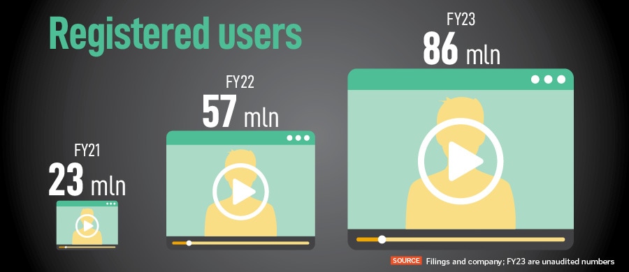 There was another aspect of common sense that helped in a big way. Bhattacharya and his gang knew that thousands or millions of users are not equivalent to crores of revenue. Doing business in the social impact segment can never have a hockey-stick growth. “Look at ShareChat, which has a massive user base," says Bhattacharya. Started in 2015, the Google-backed social media platform had a staggering 400 million monthly active users and a valuation of over $5 billion in December 2022. The operating revenue of ShareChat jumped from Rs9.4 crore in FY20 to Rs347 crore in FY22, according to Entrackr. Interestingly, over 60 percent of its revenue in FY23 came via advertisement services on the platform, and not from users. The losses, meanwhile, ballooned from Rs642 crore to Rs2,988 crore during the same period. “We knew having a large user base is not directly proportional to revenue," says Bhattacharya, who saw a heady uptick in users after the onset of the Covid-19 pandemic: From 23 million in FY21 to 86 million in FY23.