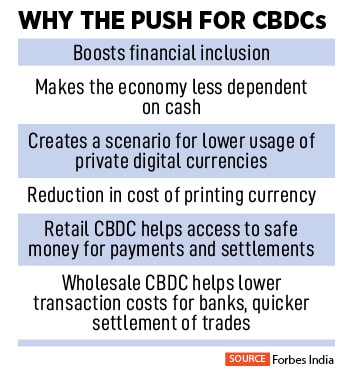 “CBDCs will be a major source of innovation and will have new payment and money features and functionalities, such as programmability. The larger aim is to bring the nation within the fold of the wider digital economy, and move cash into digital form," Cheema tells Forbes India.