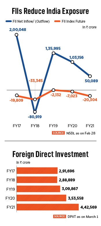 Yet, foreign direct investments (see chart) and inflows into the primary market have been strong (see chart). “If you look at the long term, global investors have always been positive for India. In the last 25 years, there have only been three years in which foreigners have been net sellers. Moreover, India has always been an overweight position for global portfolios," adds Vora.